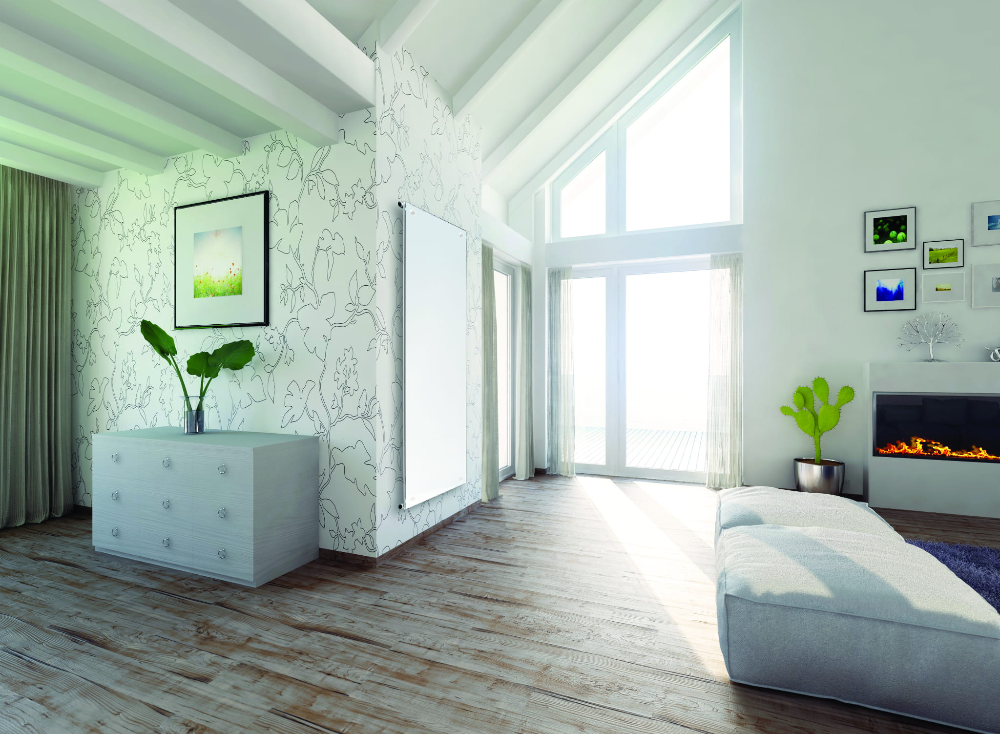 Nowoczesne, piękne źródło ciepła. Zdobniczy element osłony szklanej kolorowej lub lustrzanej idealnie wkomponuje się
