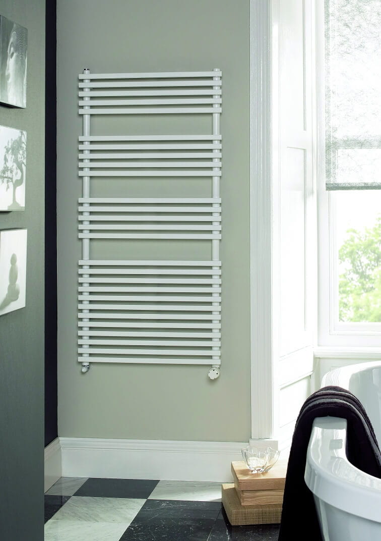 Grzejnik Gocta ma wąskie poziome panele grzewcze o kwadratowym przekroju. Są one złączone z pionowym okrągłym profilem. Daje on dużo ciepła i wizualnej przyjemności za sprawą doskonałej konstrukcji i estetycznego wykonania. Ponadto grzejnik zapewnia mnóstwo miejsca do suszenia i wieszania ręczników, dzięki zastosowaniu specjalnych krzywizn pod kątem 90 stopni.