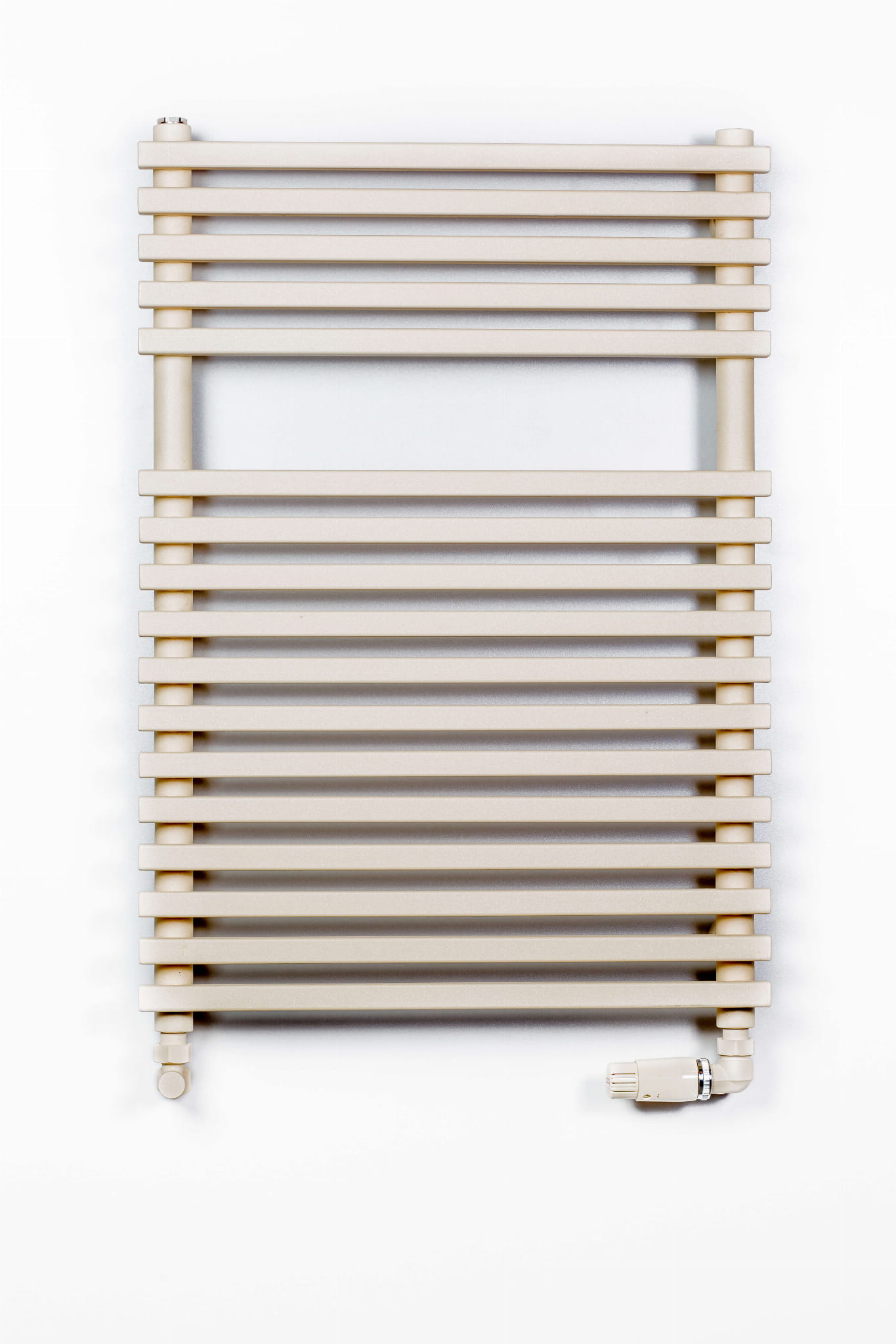 Grzejnik Gocta ma wąskie poziome panele grzewcze o kwadratowym przekroju. Są one złączone z pionowym okrągłym profilem. Daje on dużo ciepła i wizualnej przyjemności za sprawą doskonałej konstrukcji i estetycznego wykonania. Ponadto grzejnik zapewnia mnóstwo miejsca do suszenia i wieszania ręczników, dzięki zastosowaniu specjalnych krzywizn pod kątem 90 stopni.