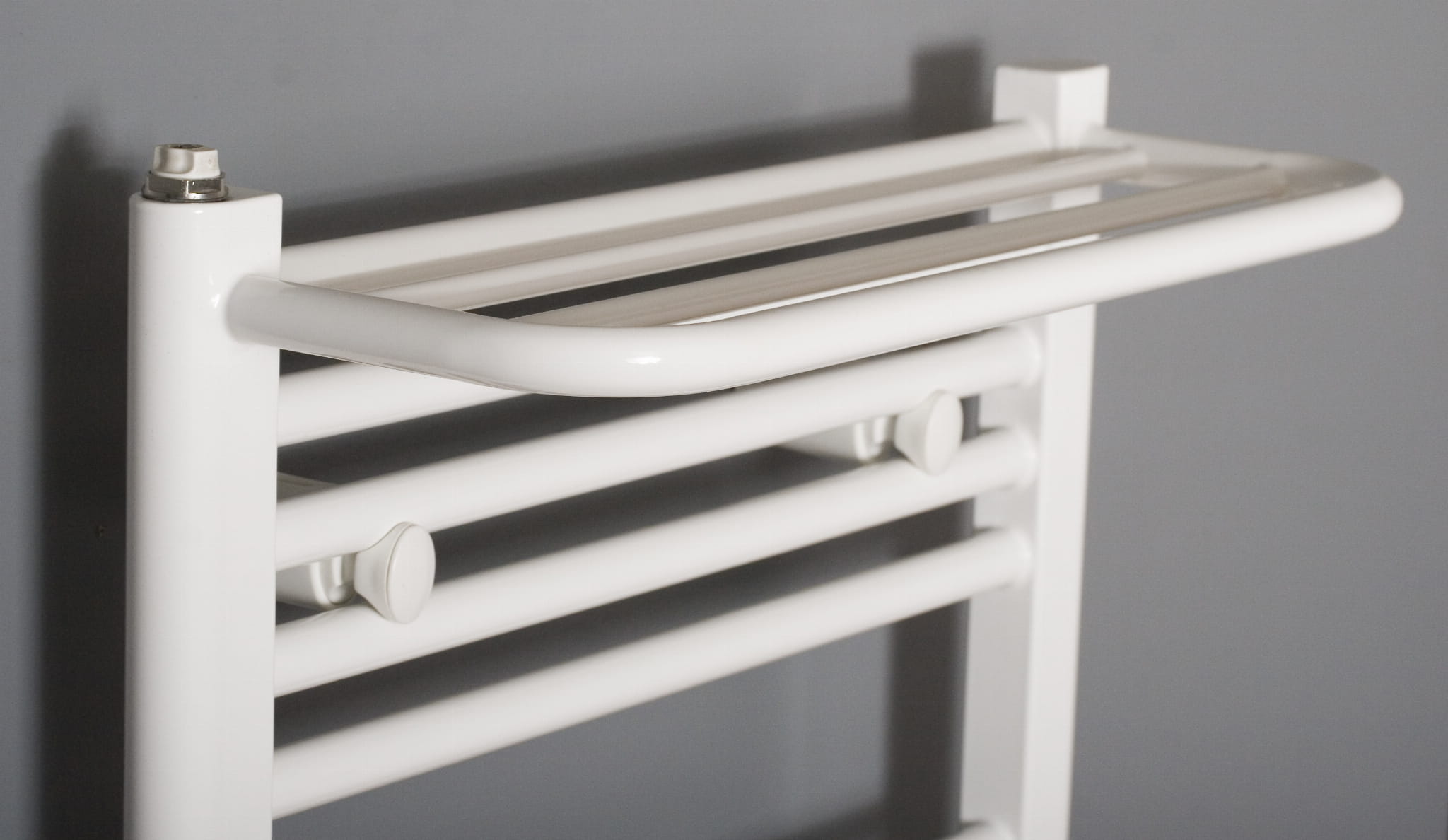 Grzejnik KILE to model, który spełnia kilka funkcji - grzeje i dekoruje pomieszczenie. Oprócz paneli grzewczych o okrągłym przekroju wspartych na dwóch smukłych kolektorach, grzejnik został wzbogacony o dodatkowe półki, które również grzeją. Za ich sprawą w łazience powstaje dużo dodatkowego miejsca na wieszanie i suszenie ręczników.