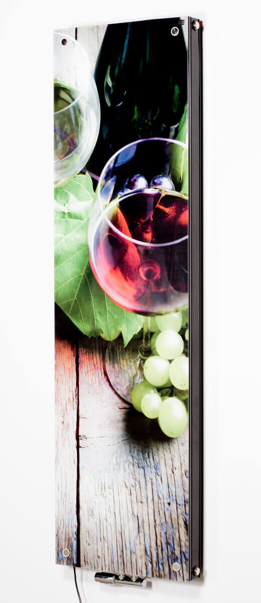 Wykończenie: grzejnik wykonany ze stali niskowęglowej lakierowanej proszkowo, osłona wykonana ze szkła hartowanego z grafiką