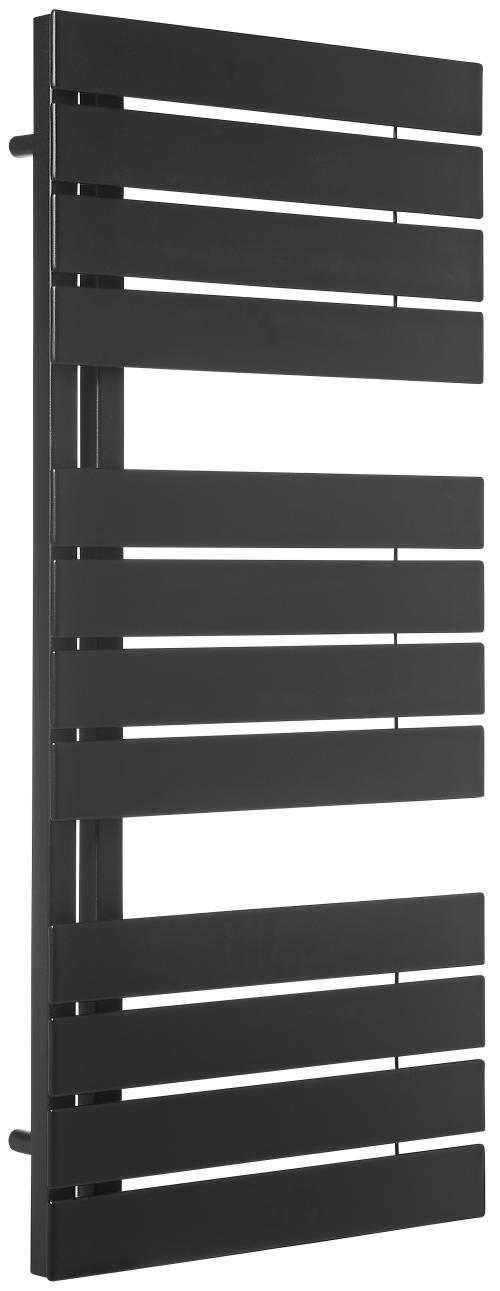 Grzejnik łazienkowy Luxrad Nobile o wymiarach 1110×500 mm, w kolorze czarny mat str., z mocą 446 W i podłączeniem dolnym dolnym lewym lub prawym. Efektywność cieplna w połączeniu z estetyką wykonania.