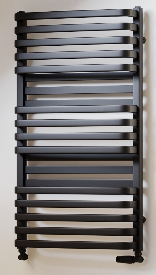 Grzejnik Luxrad Plus New o wymiarach 934×530 mm to funkcjonalne i estetyczne rozwiązanie do łazienki. Dzięki mocy 707 W zapewnia skuteczne ogrzewanie i komfort termiczny. Wykonany ze stali niskowęglowej lakierowanej proszkowo, oferuje trwałość i odporność na korozję. Kolor czarny mat str. wpasuje się w wiele aranżacji, a dodatkowo istnieje możliwość wyboru innej barwy z pełnej palety RAL. Konstrukcja oparta na kolektorach pionowych kwadratowe 30 x 30 mm oraz rurach poziomych o profilu prostokątnym 30 x 10 mm zapewnia nowoczesny wygląd. Podłączenie typu ZBD sprawia, że montaż jest szybki i prosty. Produkt objęty jest 6-letnią gwarancją.