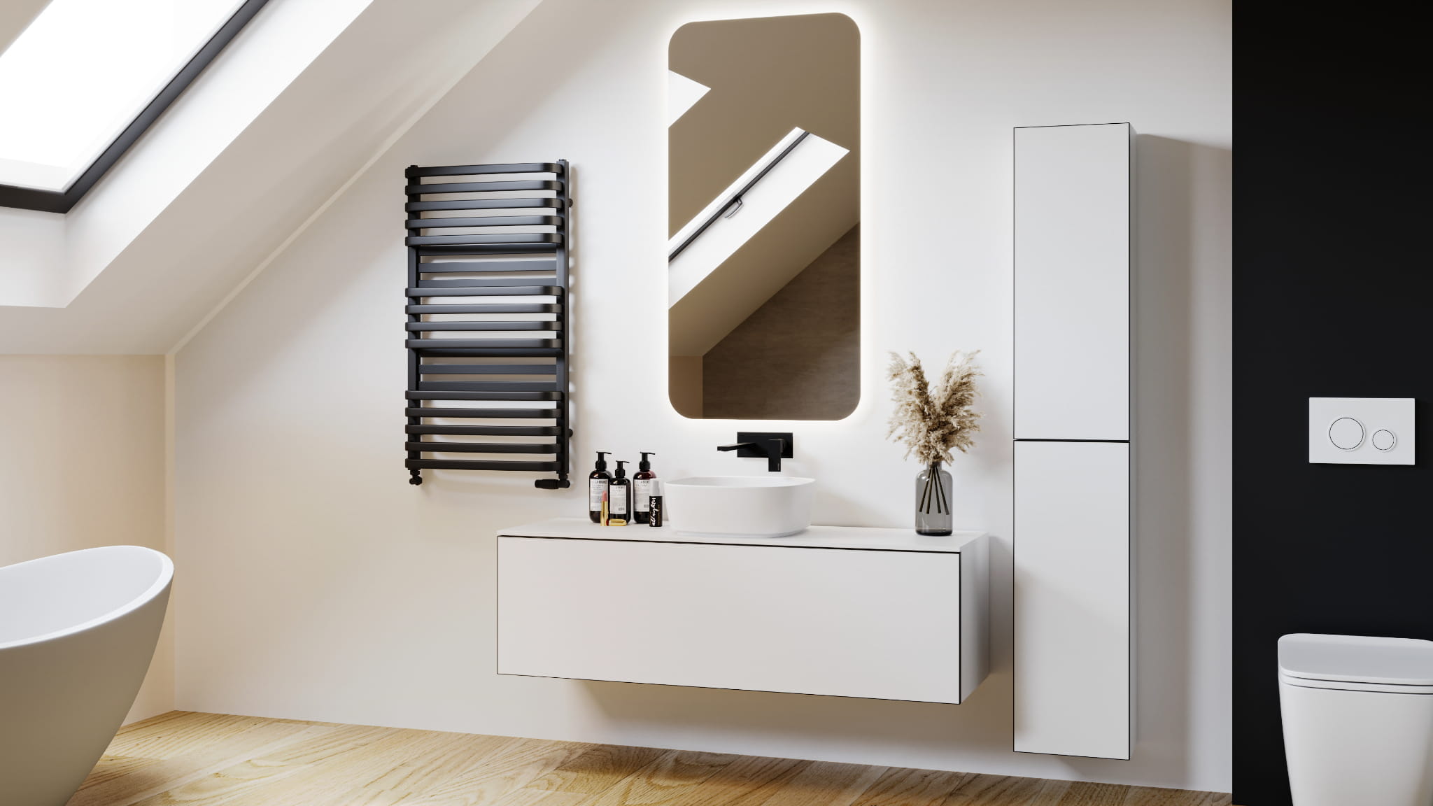 Grzejnik Plus New posiada stalowe, spłaszczone rurki grzewcze o subtelnych krzywiznach osadzone na dwóch bocznych kolektorach. Jego kształt sprawia, że grzejnik stanowi w łazience nie tylko stylową dekorację lecz jest również bardzo praktyczny.
