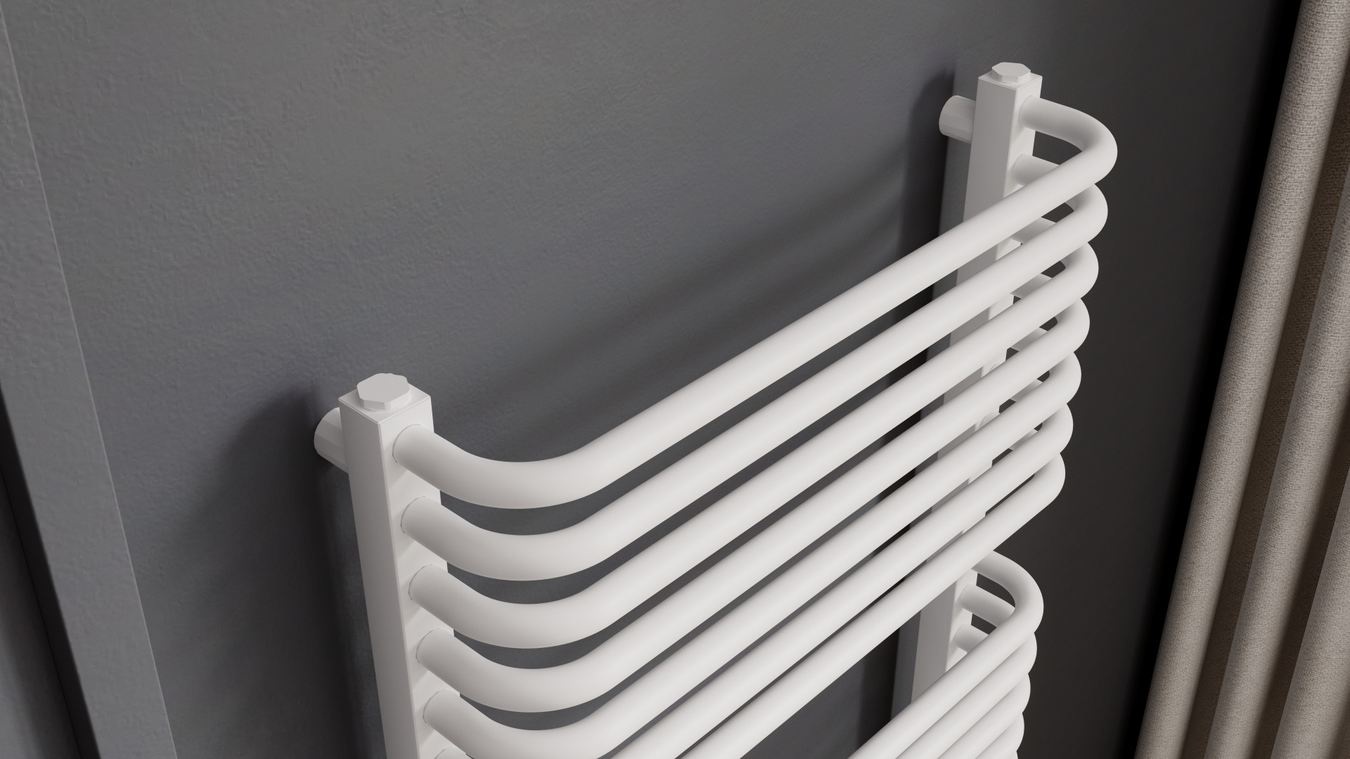 SALTO I w wersji 600×530 mm to propozycja dla miłośników nowoczesnego wzornictwa i geometrycznej precyzji. Dzięki kwadratowym kolektorom i wygiętym, stalowym rurkom model prezentuje się lekko i nowocześnie. Wykończenie lakierem proszkowym w kolorze białym jest trwałe i estetyczne. Standardowe podłączenie ZD ułatwia instalację, a moc 349 W zapewnia odpowiedni komfort cieplny nawet w chłodniejsze dni. SALTO I to idealne połączenie stylu, jakości i nowoczesnej funkcjonalności – sprawdź go w swojej łazience!