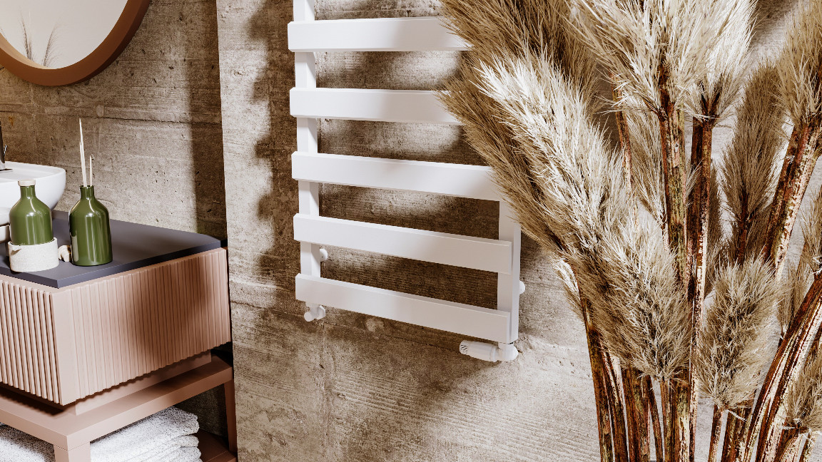 Grzejnik Luxrad Scala New o wymiarach 1230×500 mm to funkcjonalne i estetyczne rozwiązanie do łazienki. Dzięki mocy 546 W zapewnia skuteczne ogrzewanie i komfort termiczny. Wykonany ze stali niskowęglowej lakierowanej proszkowo, oferuje trwałość i odporność na korozję. Kolor biały wpasuje się w wiele aranżacji, a dodatkowo istnieje możliwość wyboru innej barwy z pełnej palety RAL. Konstrukcja oparta na kolektorach pionowych kwadratowe 30 x 30 mm oraz rurach poziomych w kształcie trapezu 12 x 60 mm zapewnia nowoczesny wygląd. Podłączenie typu ZD sprawia, że montaż jest szybki i prosty. Produkt objęty jest 6-letnią gwarancją.