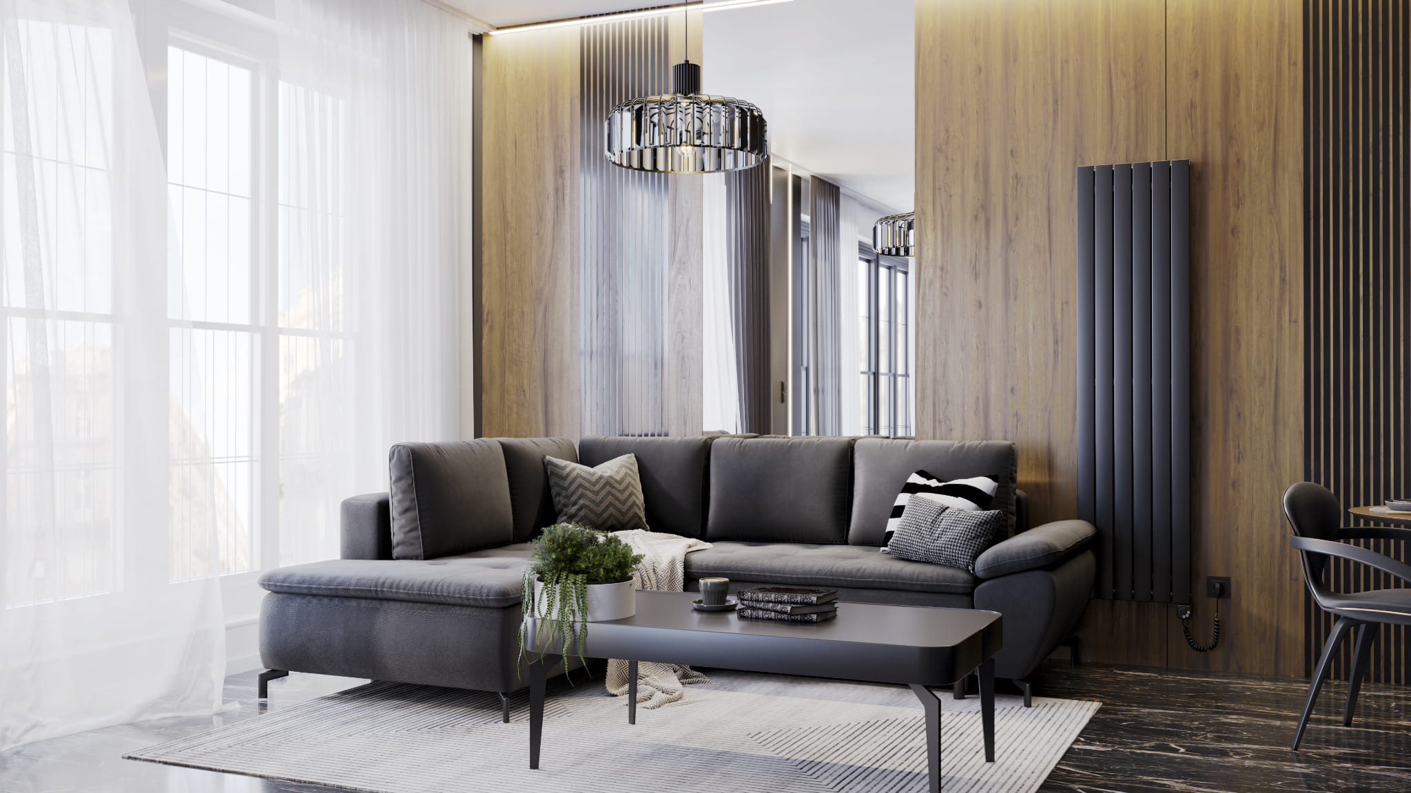 Solis Podwójny posiada płaski kształt i gładki wzór, dzięki czemu prezentuje się dyskretnie na ścianie. Dzięki pionowym, prostokątnym panelom grzewczym prezentuje się lekko i nowocześnie.