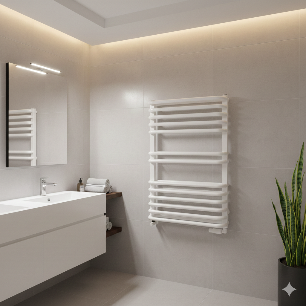 Grzejnik łazienkowy Luxrad Stark 64x53 cm biały ZBD 516W to nowoczesne i stylowe rozwiązanie do każdego wnętrza, które łączy funkcjonalność z eleganckim designem. Jego atrakcyjny czarny mat doskonale komponuje się w różnorodnych aranżacjach, stanowiąc nie tylko źródło ciepła, ale również element dekoracyjny.