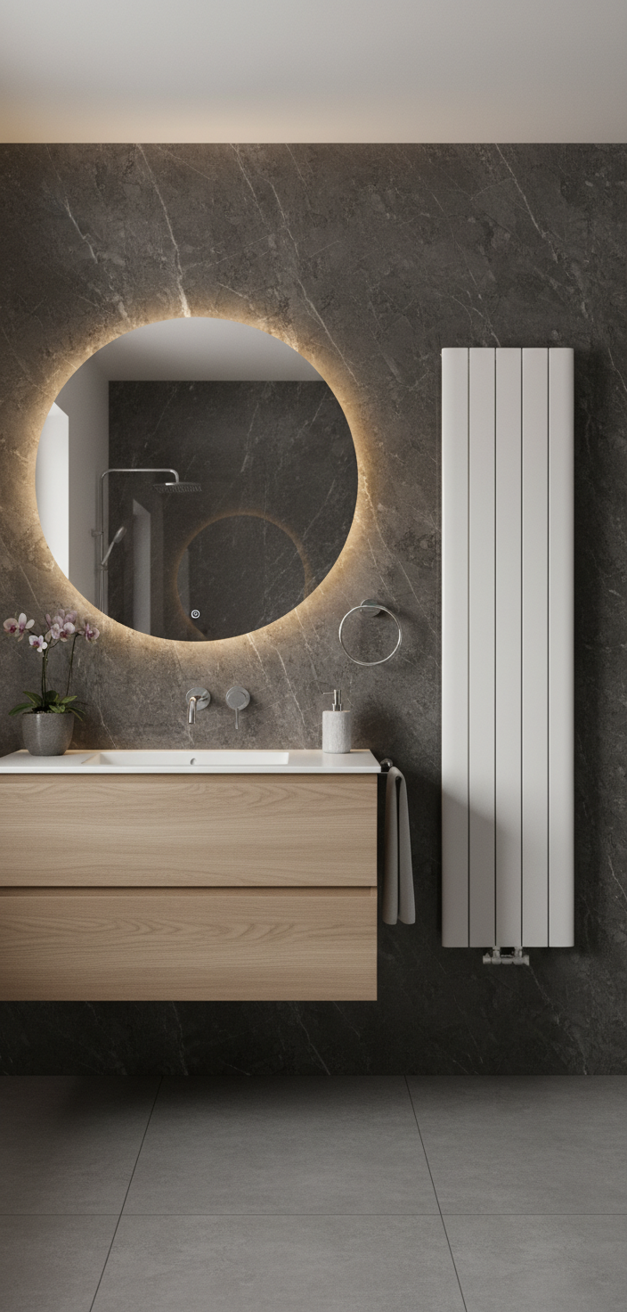TRIGO to innowacyjny model grzejnika pionowego, który wyróżnia się nowoczesną formą i detalem. Wykończony w kolorze white structure, dostępny w wariancie o wymiarach 1800×470 mm, osiąga moc 960 W. Wykonany z aluminium, posiada prostokątne panele z zaokrąglonymi krawędziami, co zwiększa bezpieczeństwo użytkowania. Model TRIGO to funkcjonalność zamknięta w formie designu. Zaokrąglone narożniki i prostokątne profile czynią go bezpiecznym i stylowym wyborem do nowoczesnych wnętrz. Jest dostępny w wykończeniu antracytowym oraz białym strukturalnym i objęty 6-letnią gwarancją.
