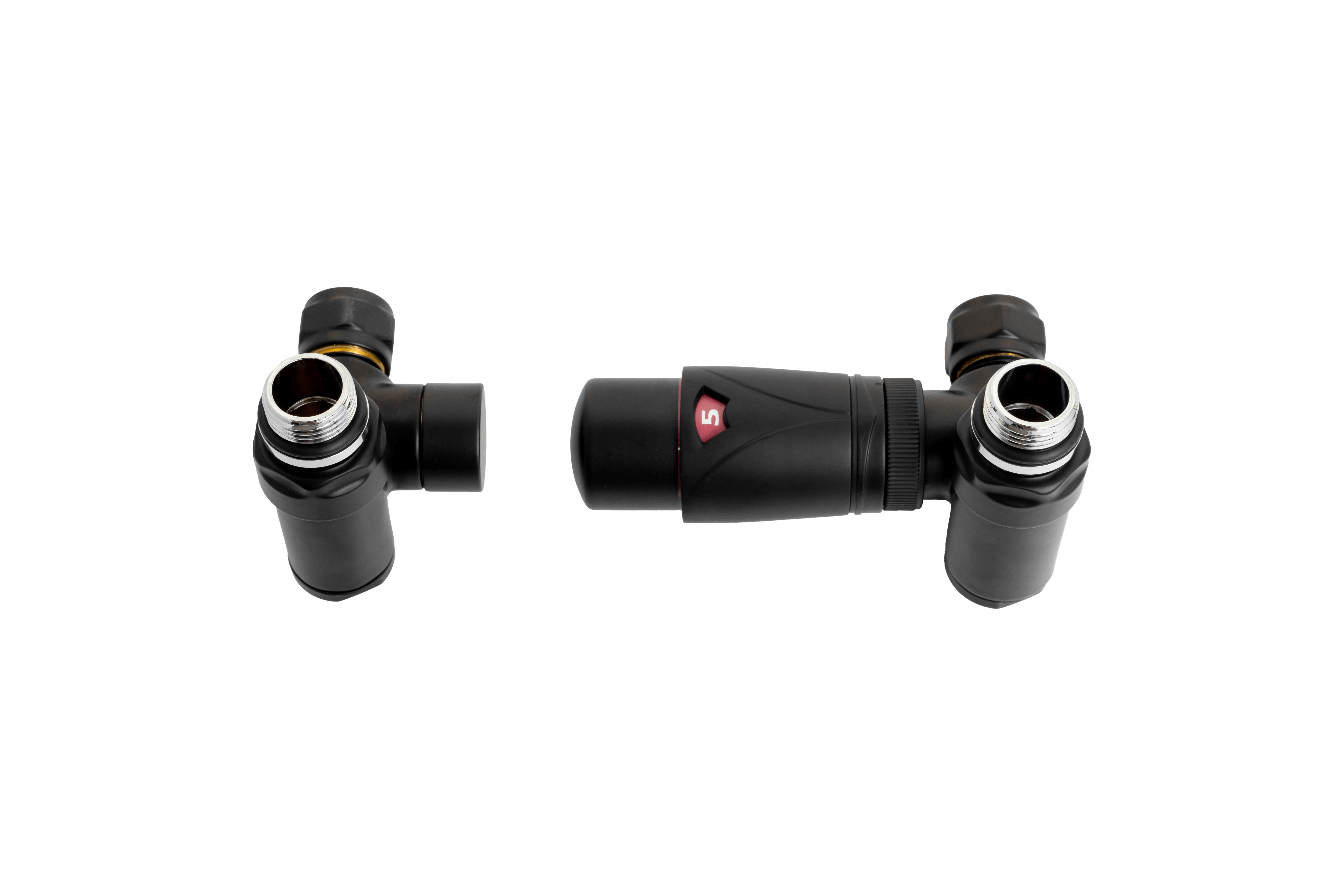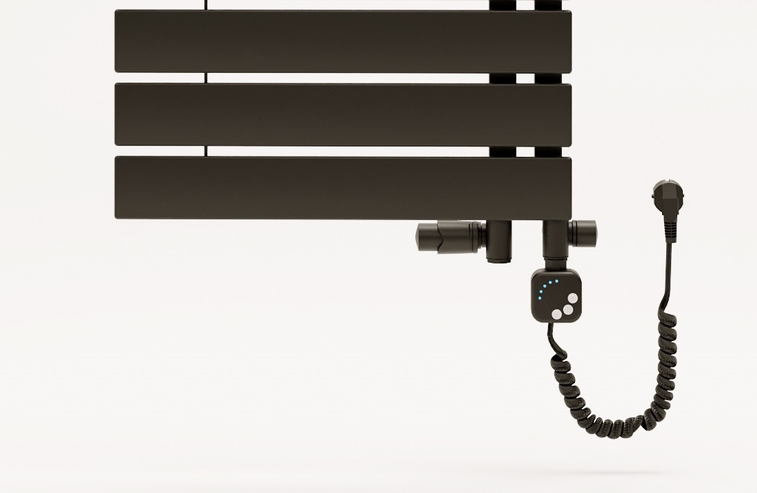 Estetyczny czarny trójnik termostatyczny pozwala na montaż grzałki oraz podłączenie grzejnika do systemu c.o. Sprawdzi się w nowoczesnych aranżacjach. Montaż z głowicą skierowaną w lewo – do prawego kolektora.