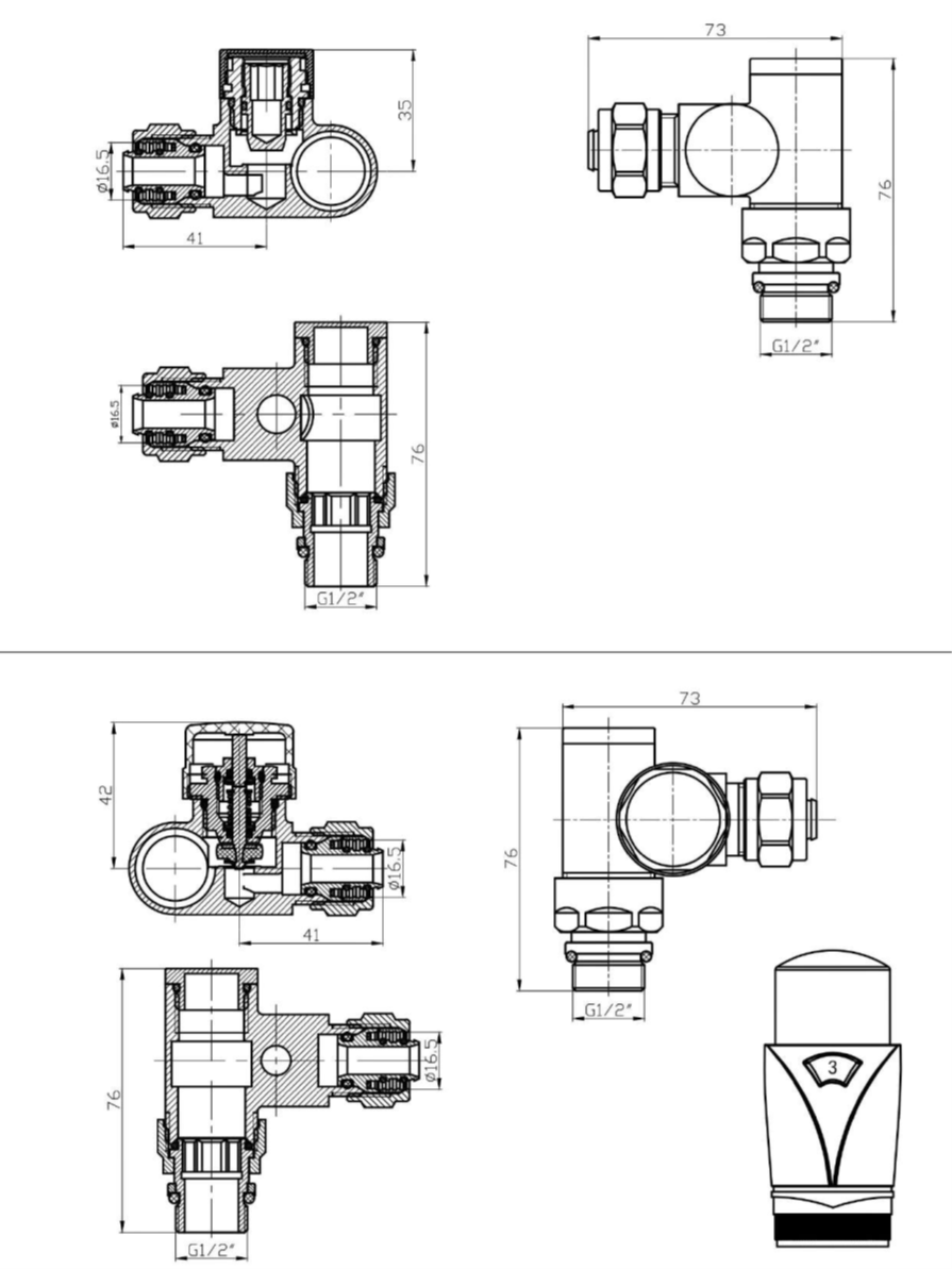 • Przyłącze: 1/2” (grzejnik), M22x1,5 (c.o.)