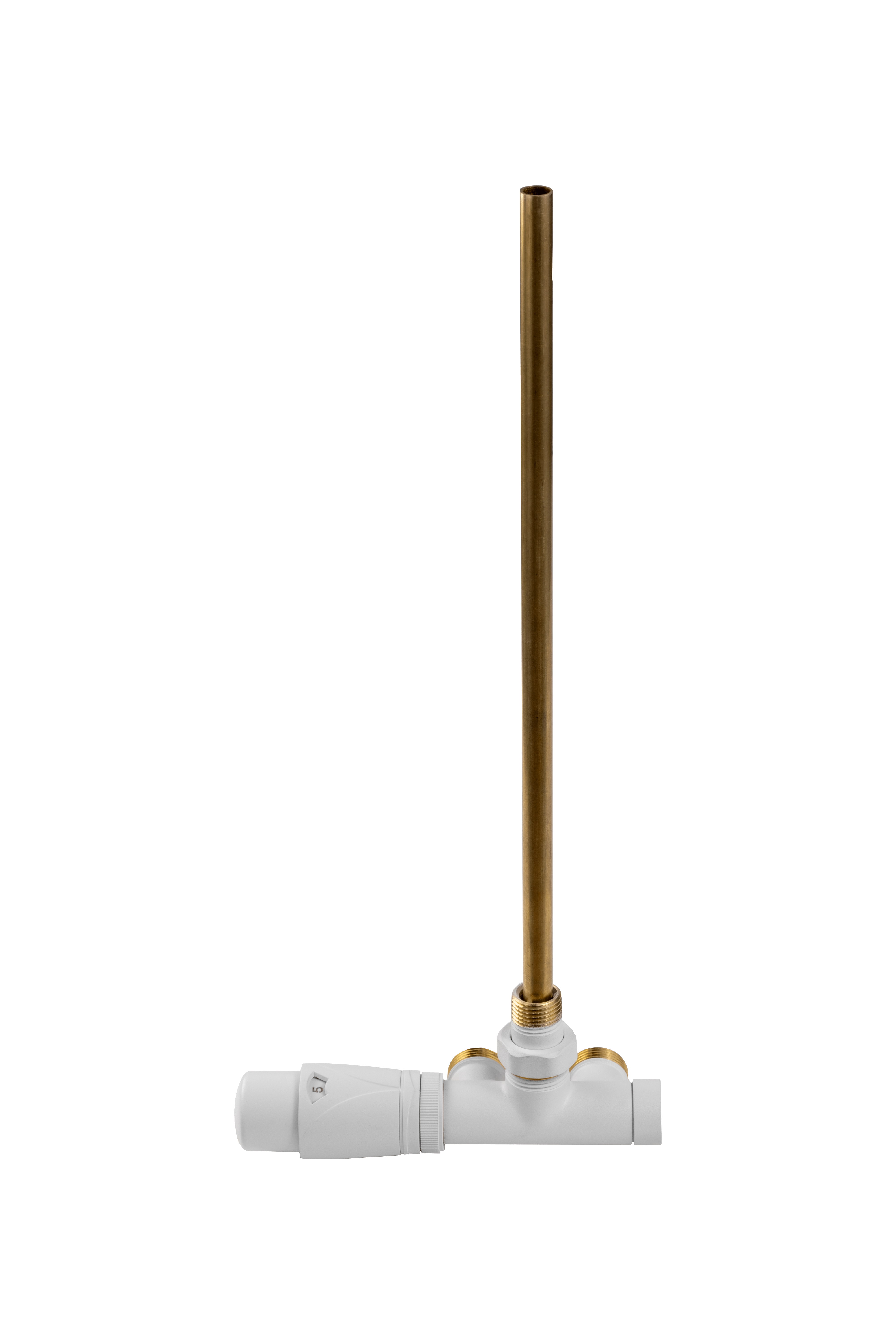 Przyłącze jednootworowe kątowe L50 w kolorze białym umożliwia jednoczesne podłączenie zasilania i powrotu do jednego kolektora grzejnika. Dzięki wkładce termostatycznej i opcji zamiany stron, zapewnia dużą elastyczność instalacyjną. Idealne rozwiązanie do montażu kompaktowego i estetycznego grzejnika.