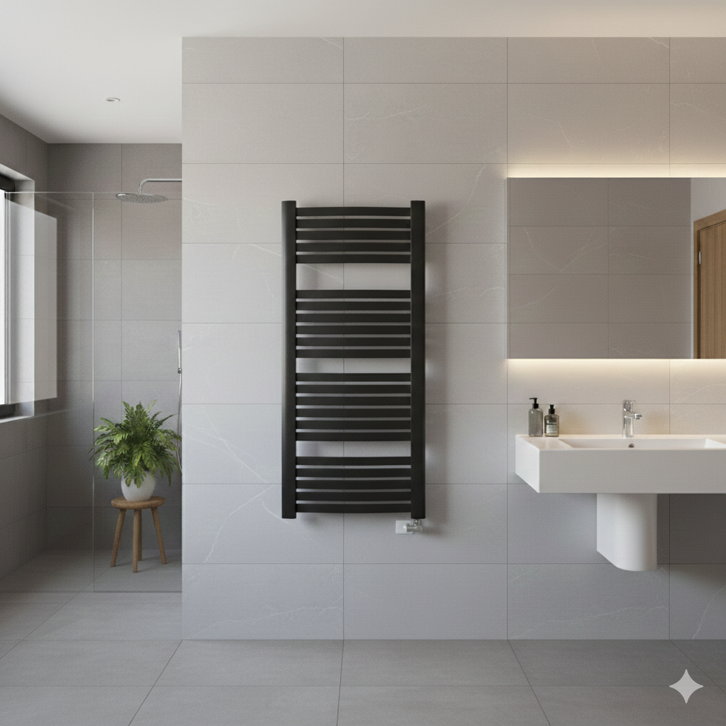 - Wymiary: 1025×480 mm – kompaktowy i stylowy - Moc: 434 W – wysoka efektywność grzewcza - Kolor: czarny mat struktura – eleganckie wykończenie - Podłączenie: ZD – zasilanie dolne - Kolektory pionowe: 34×56 mm – przekrój trójkątny - Rury poziome: 30×10 mm – prostokątny profil - Materiał: stal niskowęglowa – trwałość i niezawodność - Wykończenie: lakier proszkowy – odporność na uszkodzenia - Ciśnienie robocze: 7 bar – bezpieczne użytkowanie - Temperatura maksymalna: 95°C – pełna wydajność
